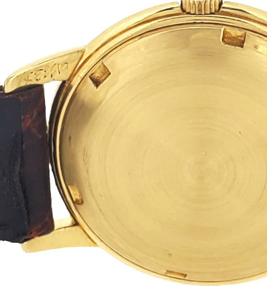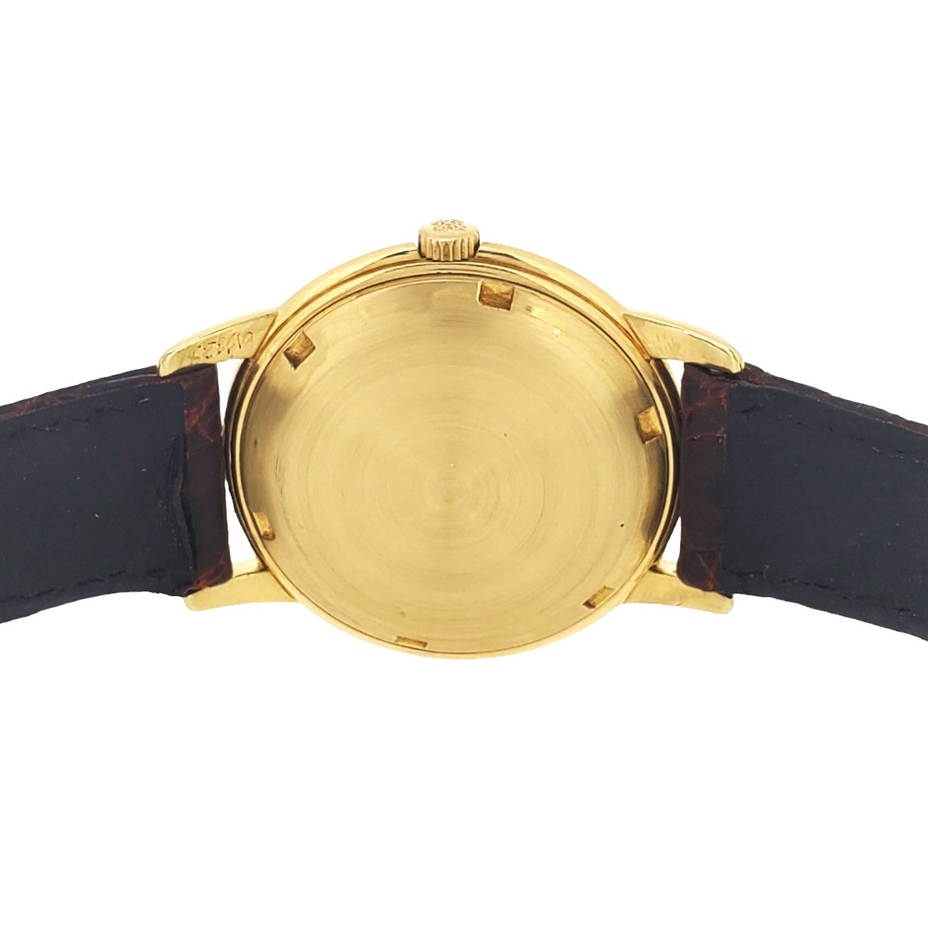 This Patek Philippe 2551J "Disco Volante" automatic Calatrava is made in 18K yellow gold. The watch measures 36mm in diameter, powered with an 30-jewel 12-600 AT caliber automatic movement, #762136 / #687440. The watch is further accompanied with a Patek strap and Patek gold buckle. The dial has been refinished in a perfect silver matte finish.